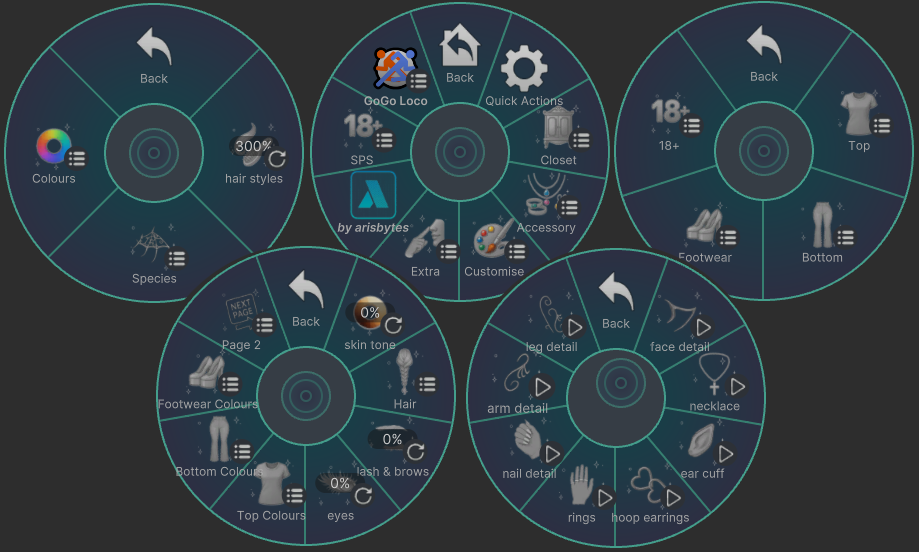 - customisation: colour/texture swaps for clothes, hair, skin, nails, lashes, brows, species, and metal; hue shift for hair and metals